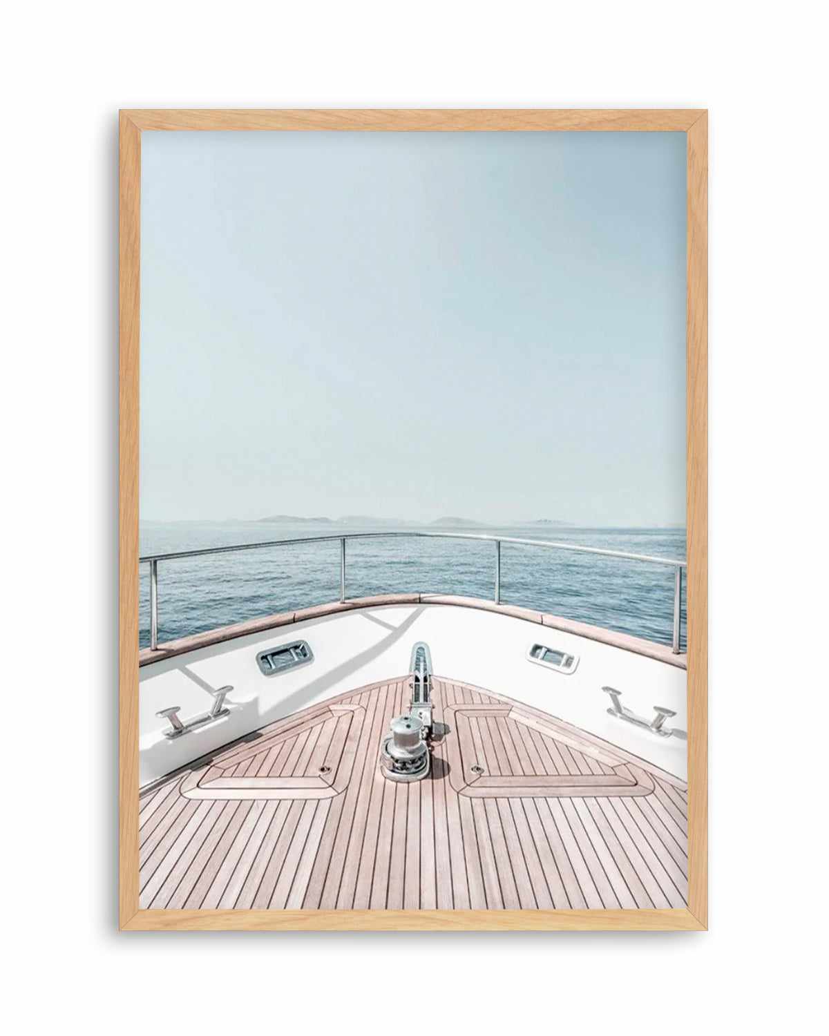 This chic coastal art print featuring a boat at the end of a dock with calming blues and whites, is perfect for any home or office. A calming seaside photographic art print, is a must for any modern Hamptons style coastal home.